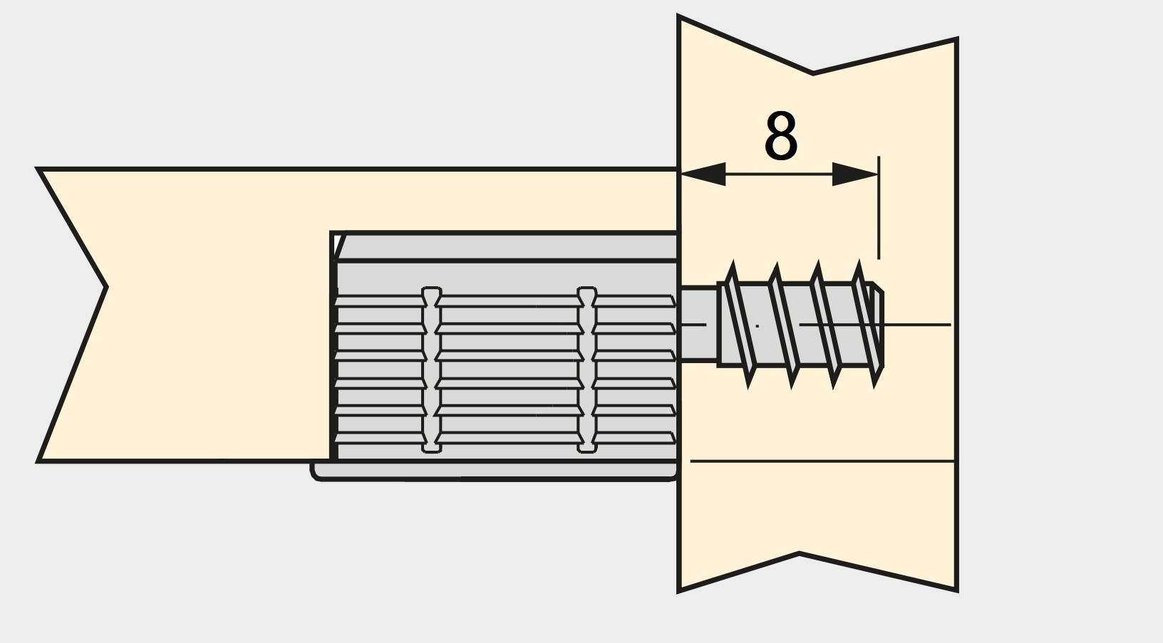 De verbindingsbout 8084001 wordt bijvoorbeeld in de zijwand van een meubel gestoken en aangesloten op een excentrische verbinding aan de onderkant van een plank.