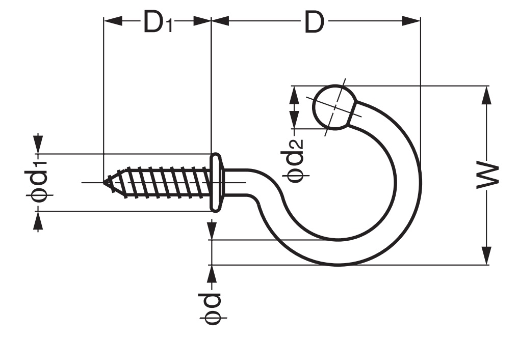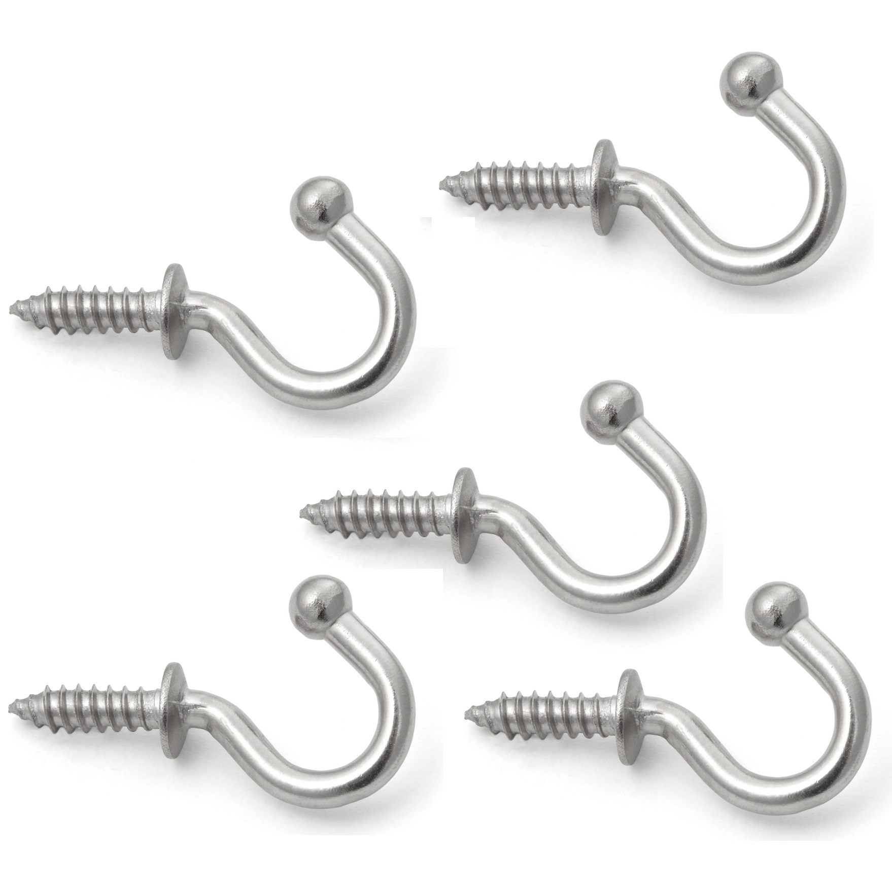 5 stuks hoogwaardige RVS schroefhaken SUS304 (V2A of 1.4301) met afgeronde punt