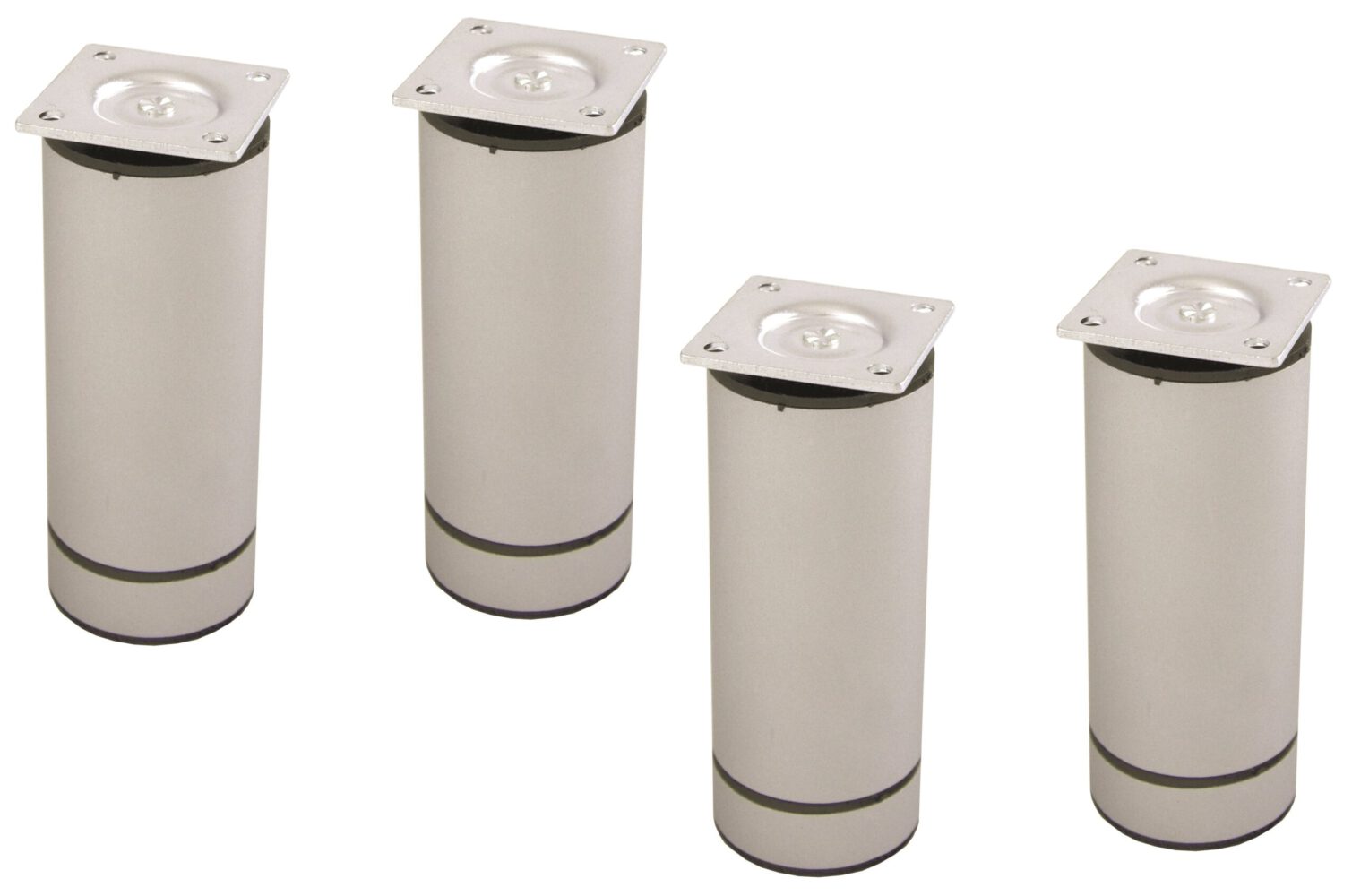 UMAXO® Design meubelpoten, set van 4, in hoogte verstelbaar +20 mm | Kleur: Alu Silver | Meubelpoten van aluminium, 3 afmetingen, incl. Schroefplaat. Diameter: 40 mm