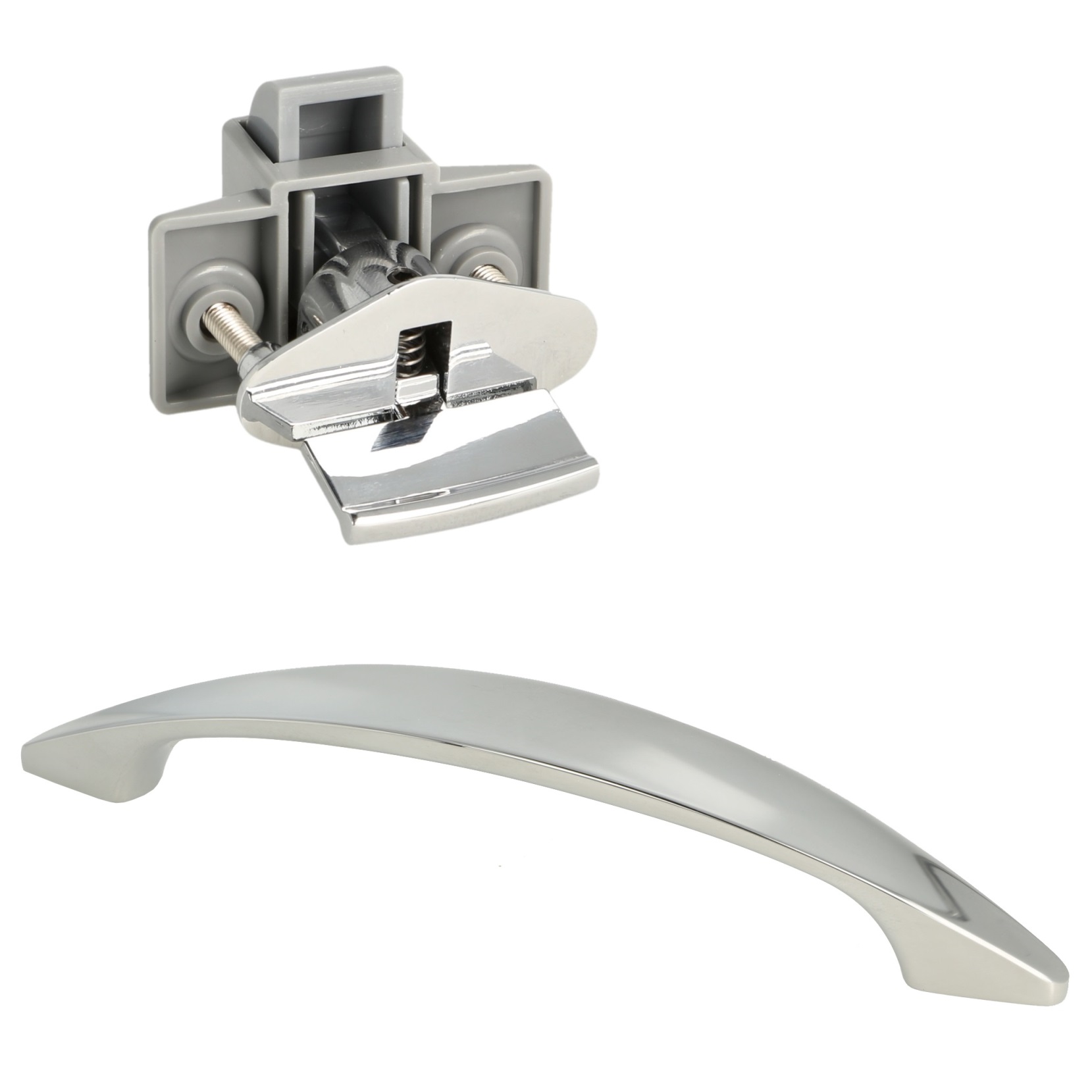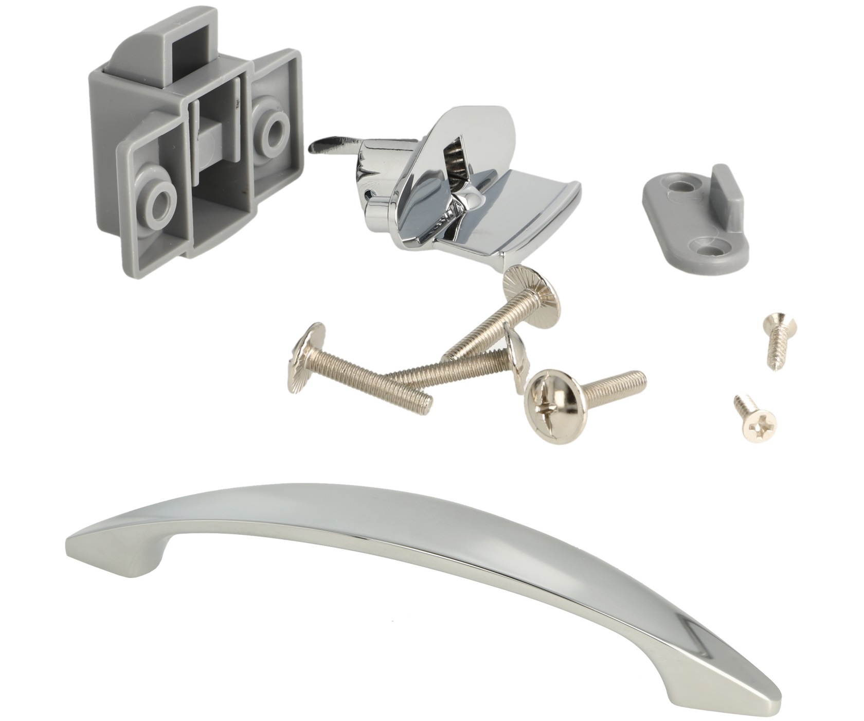 Het hoogwaardige deurkrukslot 14.03.080-0+14.03.080-5 is een meubelgreep met vergrendelingsfunctie en zorgt er in vergrendelde toestand voor dat de meubeldeuren, kastdeuren of lades niet onbedoeld opengaan tijdens het rijden of vliegen.