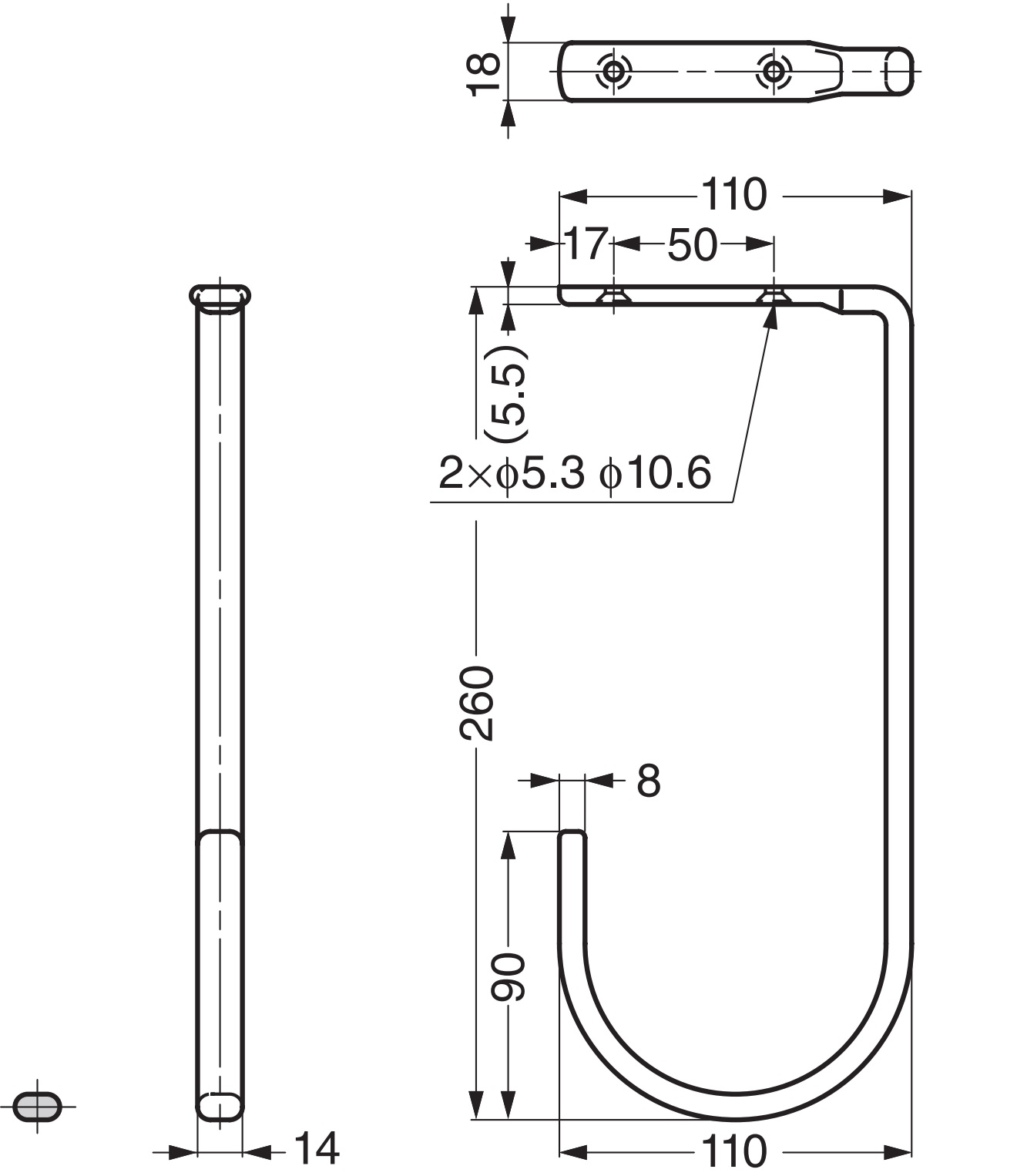 - De universele haak heeft JFT260M twee montagegaten met een diameter van ⌀5,3 mm (13/64″), met verzinkboor