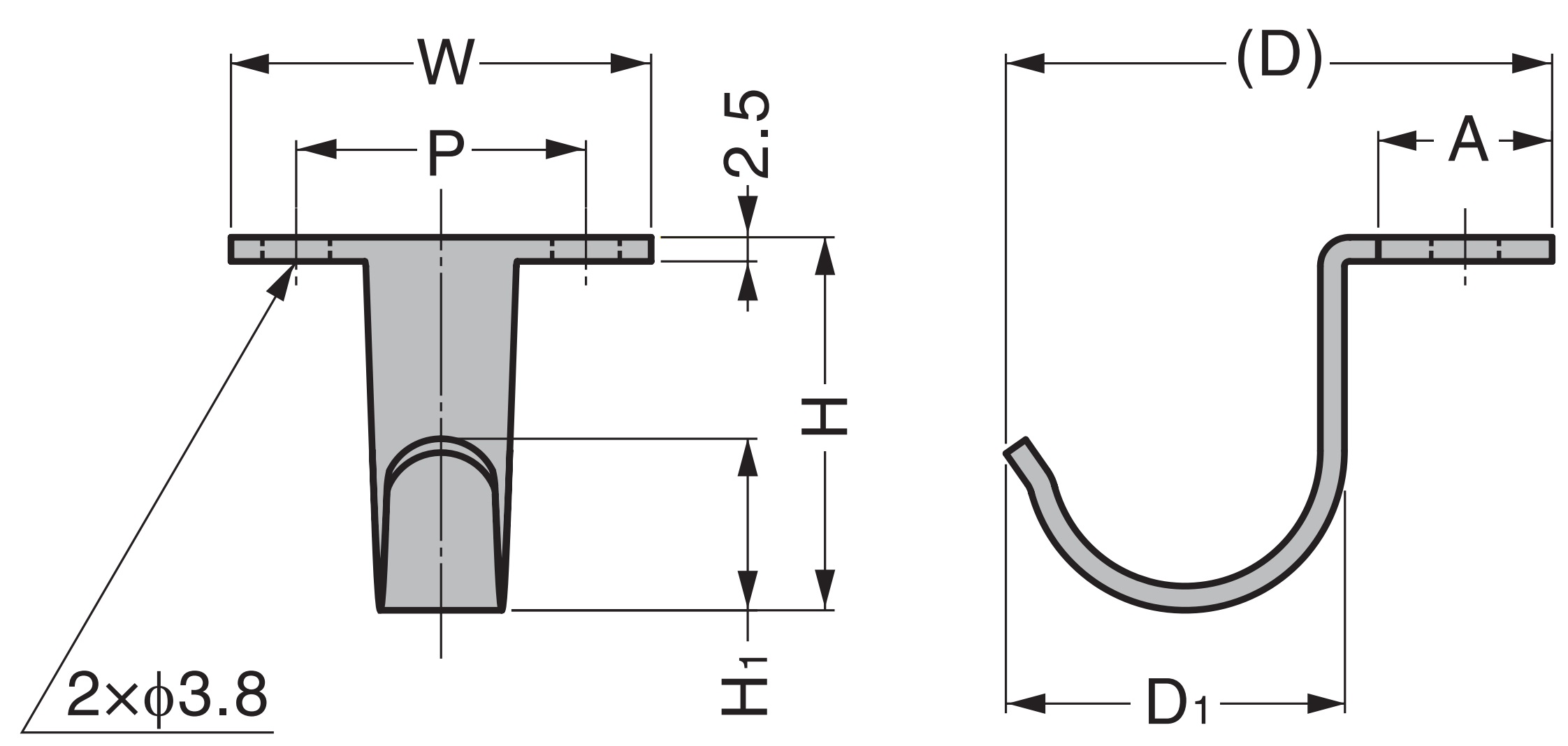 Tekening: Roestvrij stalen haken 110-017-524 (HJU-30S) en 110-017-525 (HJU-50S) van SUGATSUNE / LAMP® (Japan)