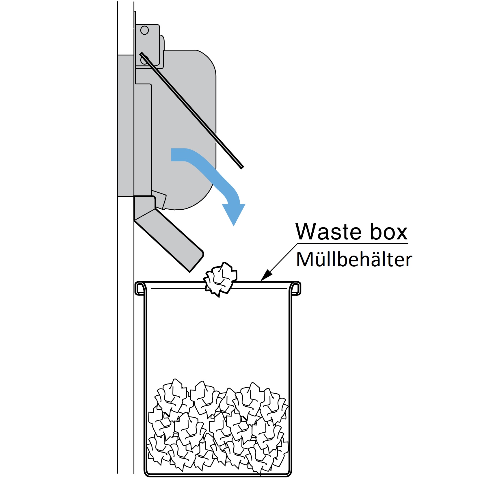 - Leidt items veilig in een container met een afstand van 94 mm (3-45/64″) van de afvalklep