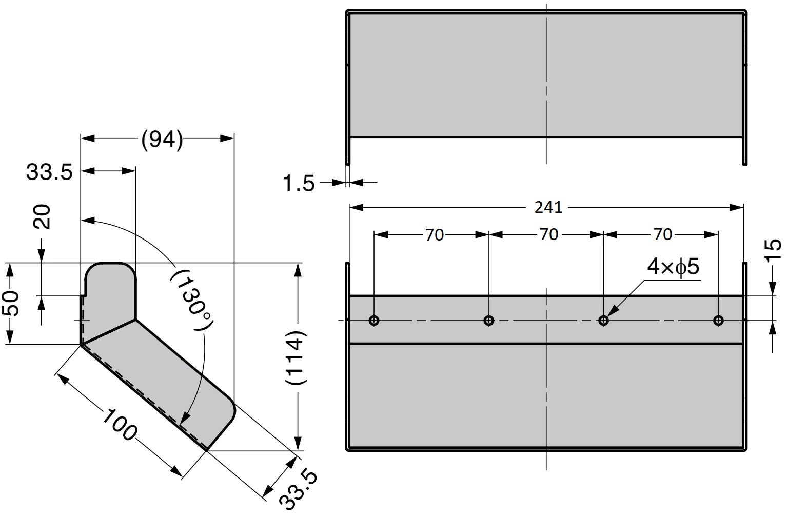 - De roestvrijstalen keerplaat AZ-SLP230 heeft vier montagegaten met een diameter van ⌀5 mm (13/64″)