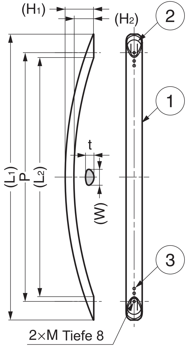 Robuuste industriële behuizingsgreep gemaakt van stevige aluminiumlegering (aluminium), oppervlak: roestvrijstalen look, geanodiseerd, SOR-800S