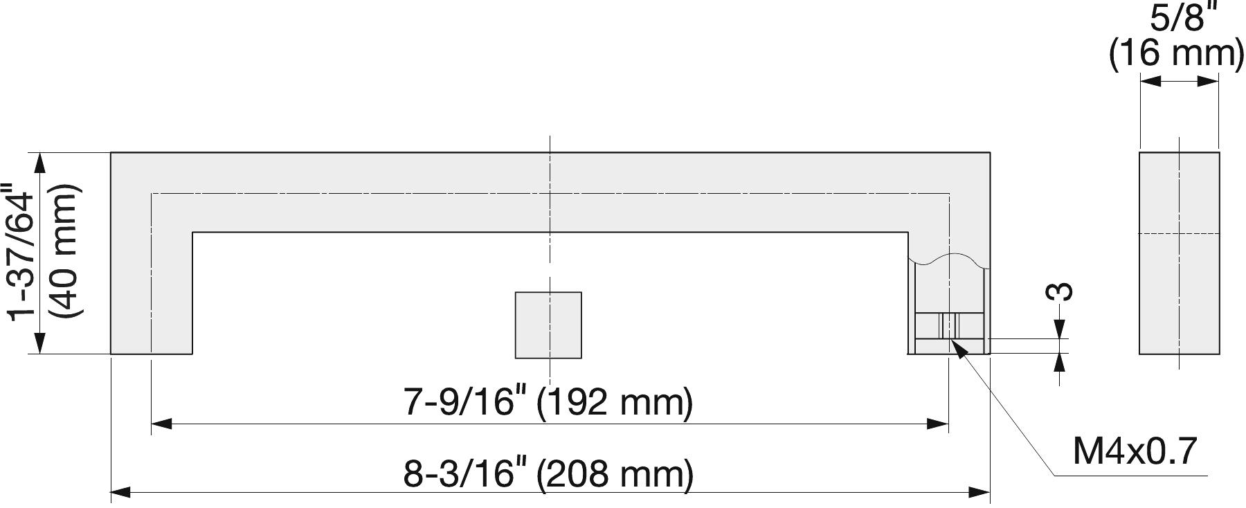 Sugatsune Lichtgewicht Rechthoekige RVS Deurklink KPH-192 (208mm). Technische tekening