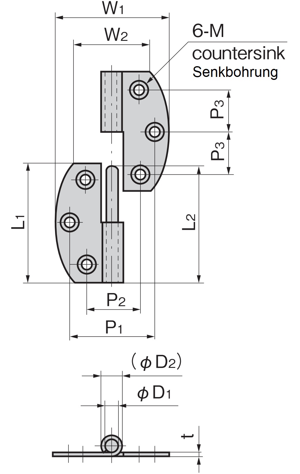 - Lengte van het lift-off scharnier (L1): 31 mm (1-7/32″)