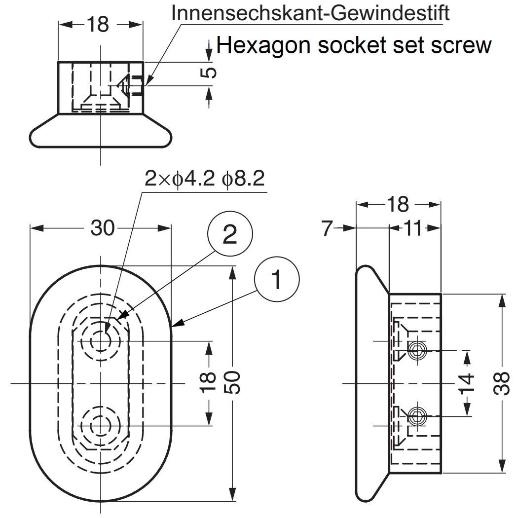 - De afstand tussen de montagegaten in de basis is 18 mm (45/64″)