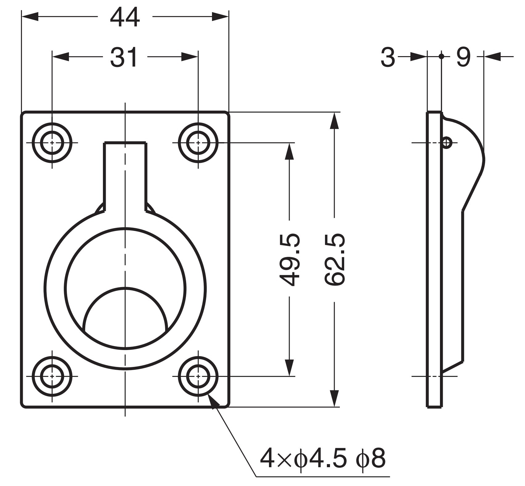 - Diameter van de schroefgaten: ⌀4,5 mm (0,18″)