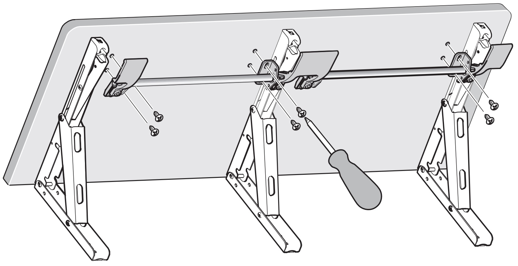 Een optioneel middenlager voorkomt buigen bij overspanningen van meer dan 700 mm (27-9/16″).
