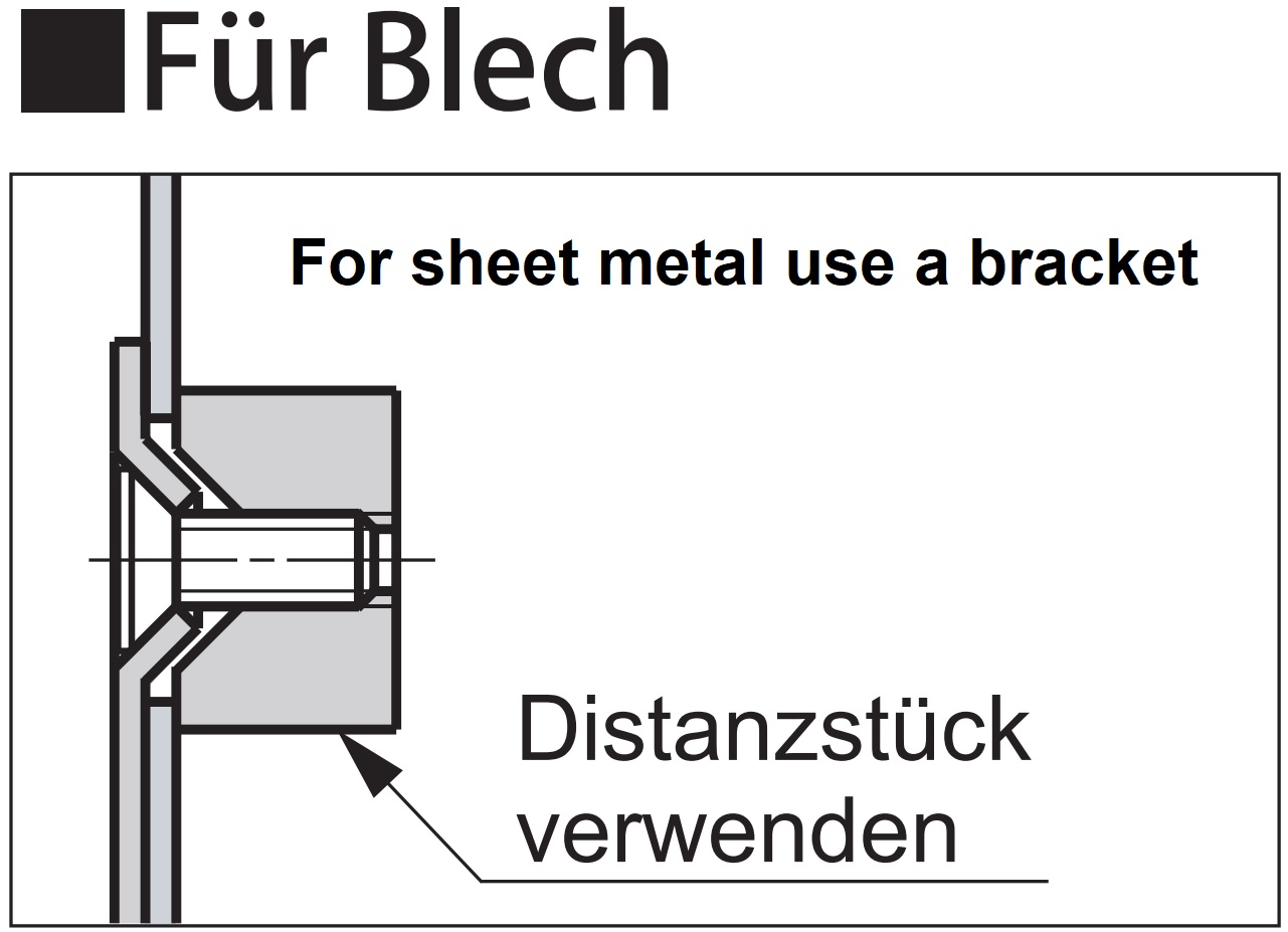 - De ringvormige roestvrijstalen vouwgrepen 980642 kunnen ook in het plaatwerk worden geïnstalleerd met behulp van een afstandhouder en vier M3-plaatwerkschroeven. Deze zijn niet inbegrepen in de leveringsomvang (voor meer details zie