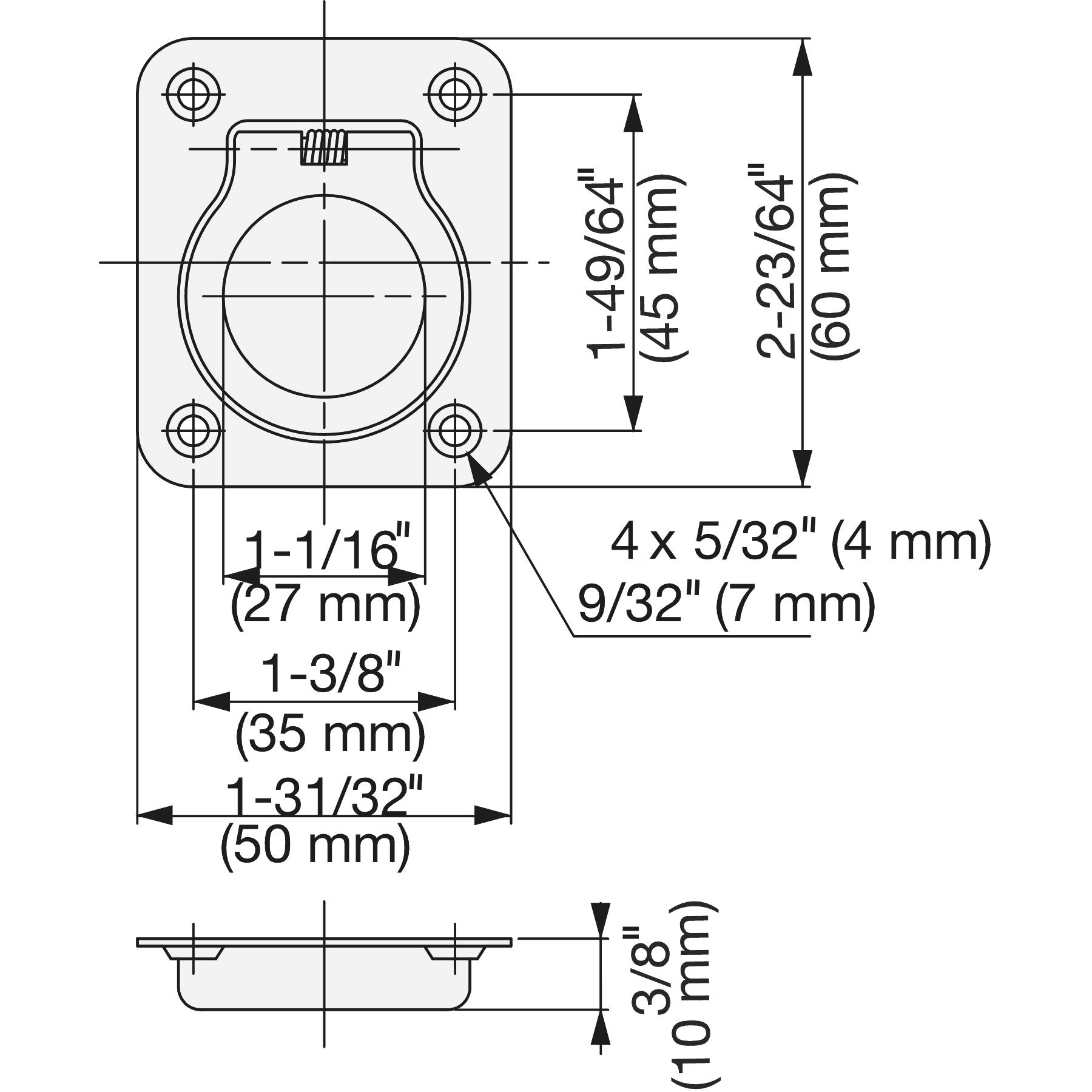 - Afstand tussen montagegaten: 35 mm (1-3/8″) horizontaal en 45 mm (1-25/32″) verticaal