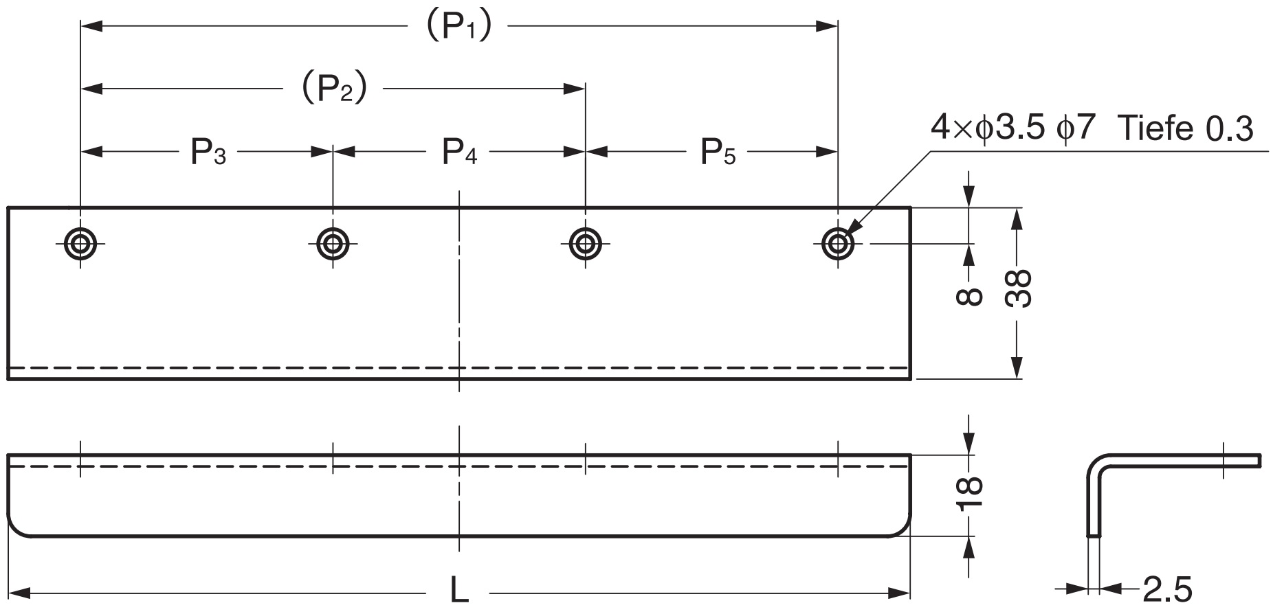 - Lengte van de roestvrijstalen hoekgreep (L): 70 mm (2-3/4″)