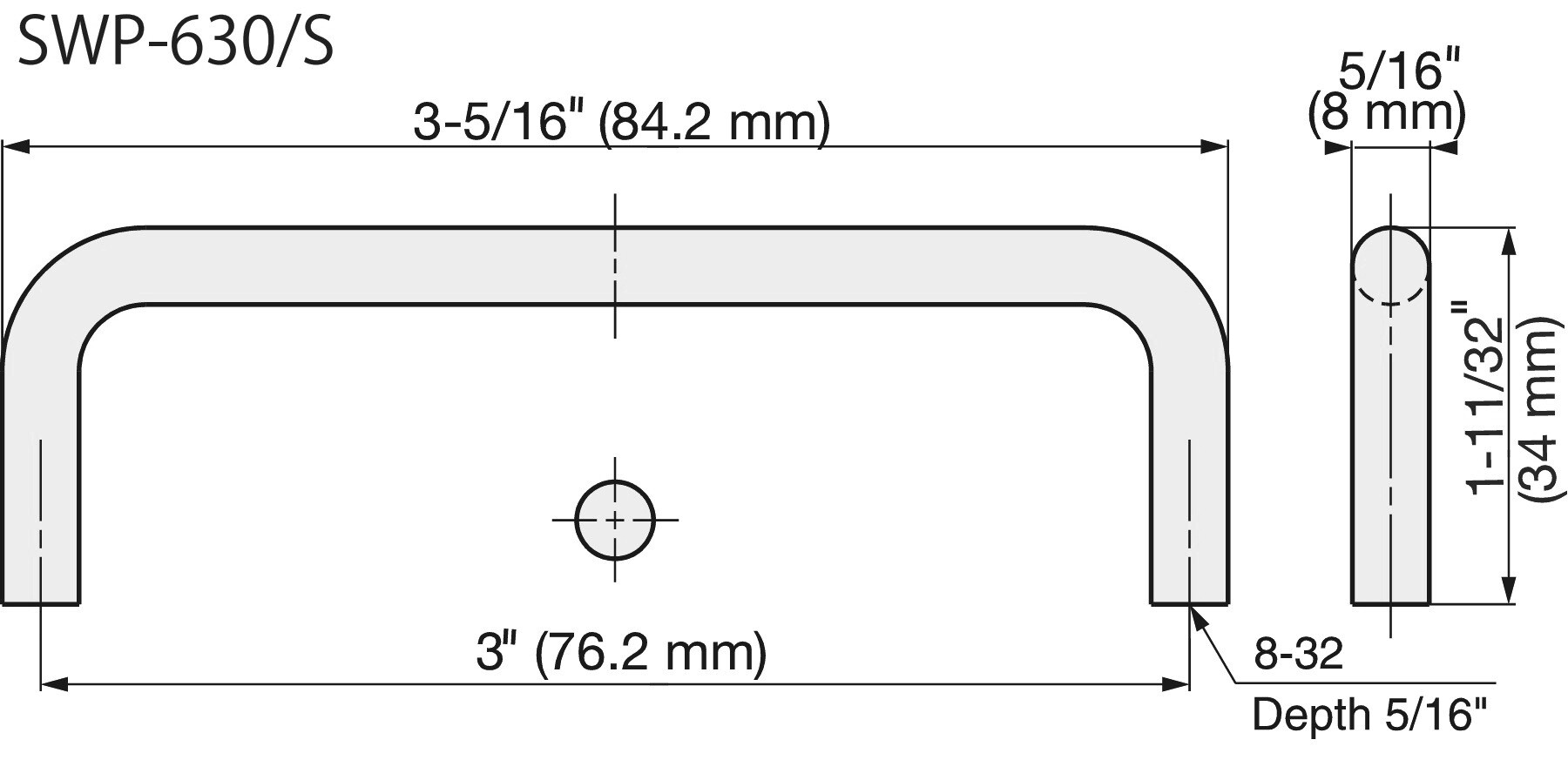 SWP-630S Roestvrijstalen meubelhandgreep SUS316 84,2 mm. Technische tekening