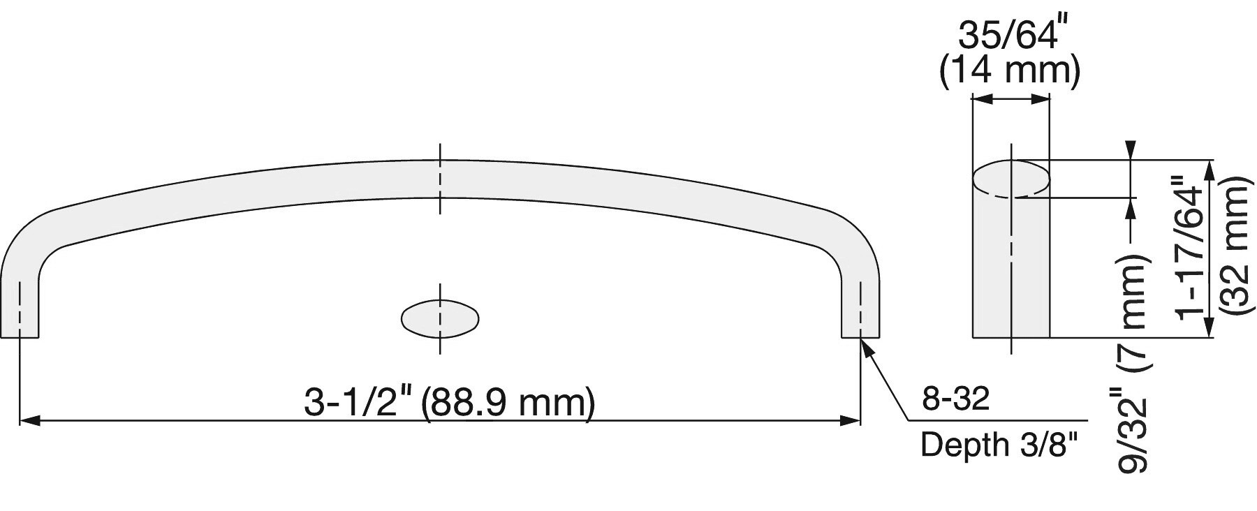 Hoogwaardige massief roestvrijstalen handgreep SUS316, gecombineerde matte en glanzende afwerking, hoogte 32 mm EK-R635/M en EK-R635/S