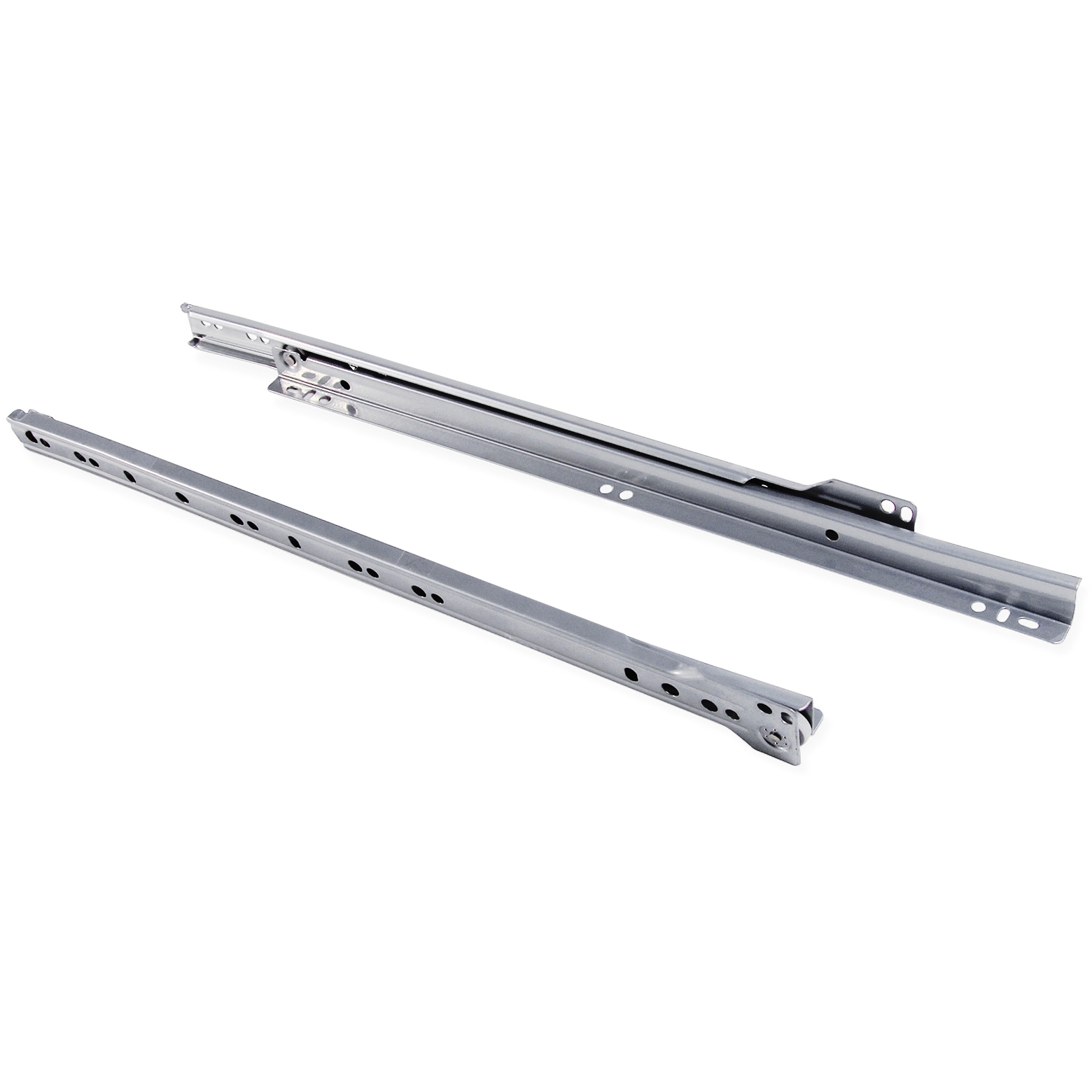 De ladegeleidingen 4389225 gemaakt van robuust staal, nominale lengte 600 mm (23-5/8″), met geïntegreerde zelfsluitende werking waardoor de lades soepel kunnen rollen.