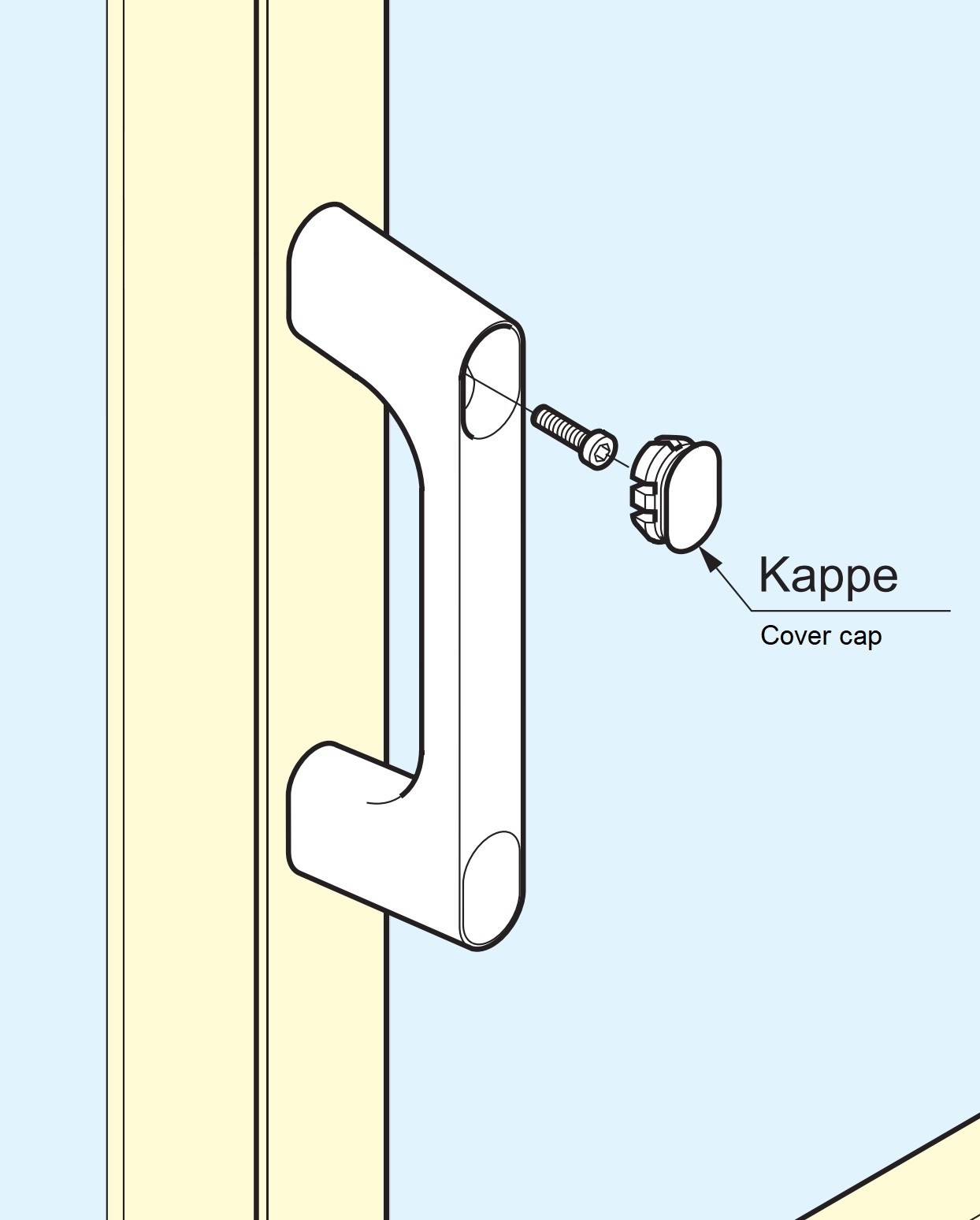De afdekking KMHC-BL verbergt het bevestigingspunt van de industriële handgreep, zodat de schroeven niet zichtbaar zijn en het ontwerp van het apparaat wordt benadrukt.