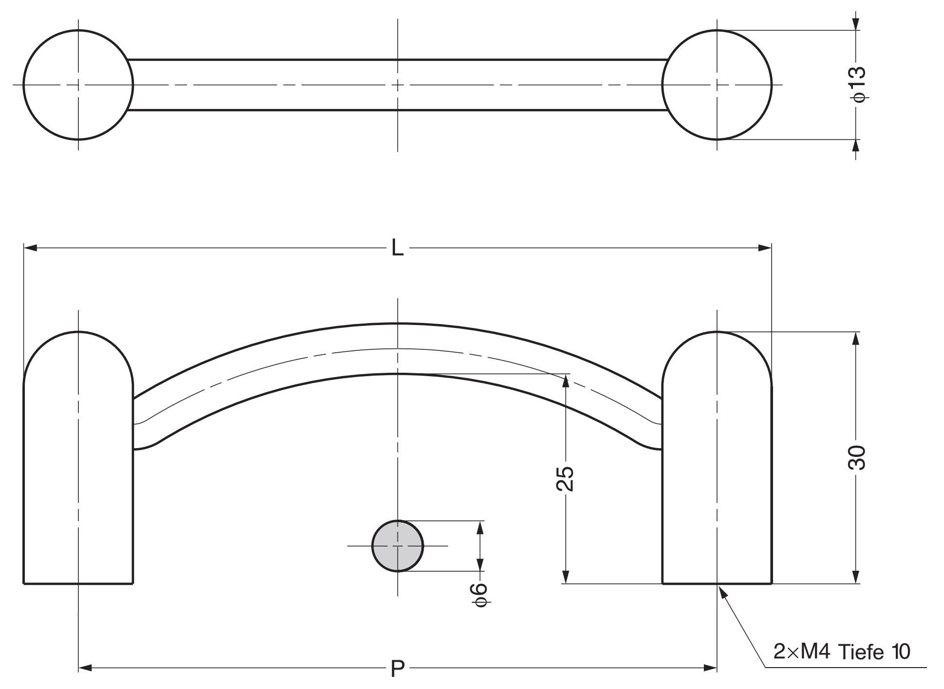 - De diepte van de gaten in het handvat is 10 mm (0,4″)