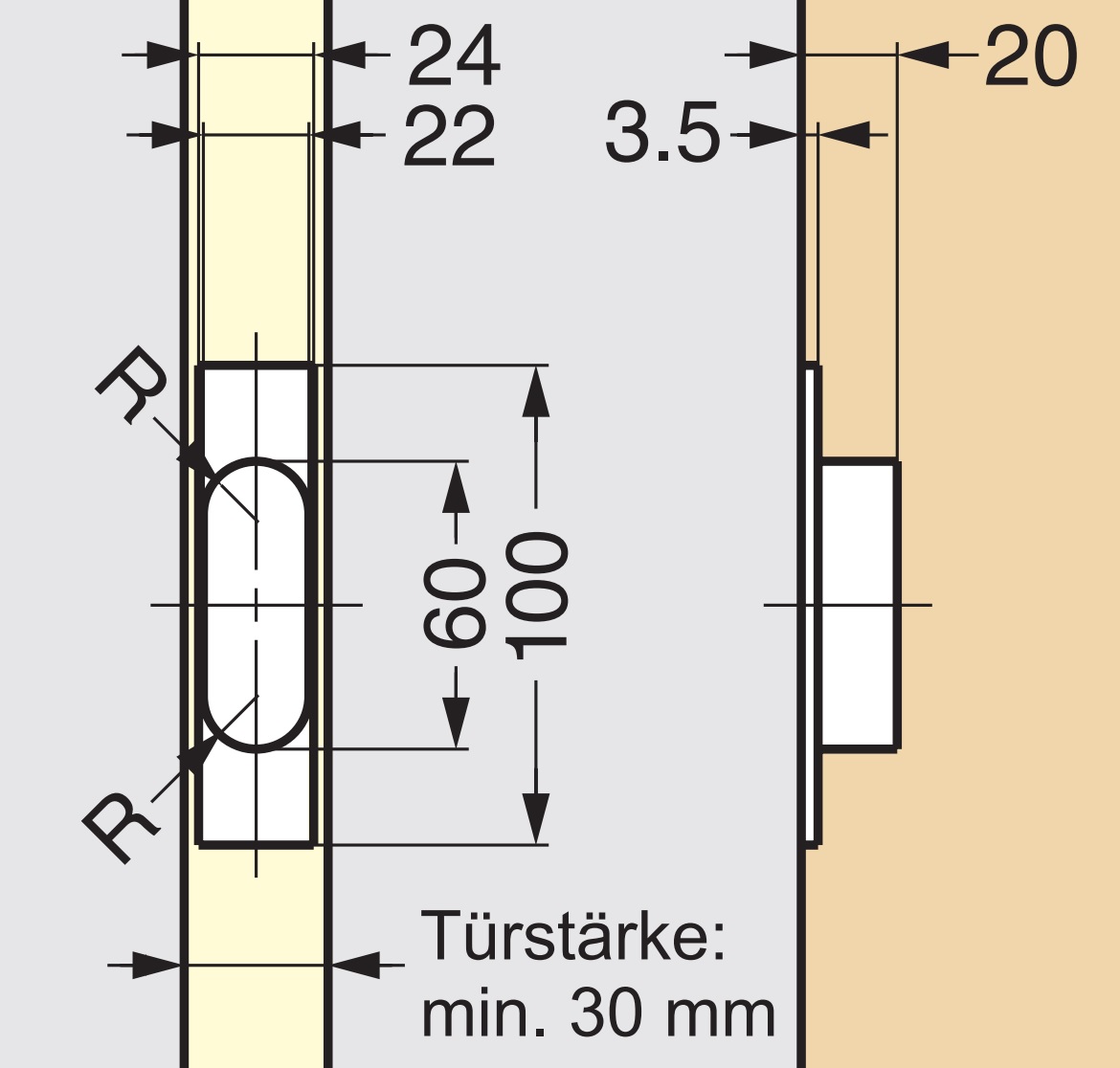 - De deur moet worden uitgefreesd voor montage (voor verdere details zie montagetekening )
