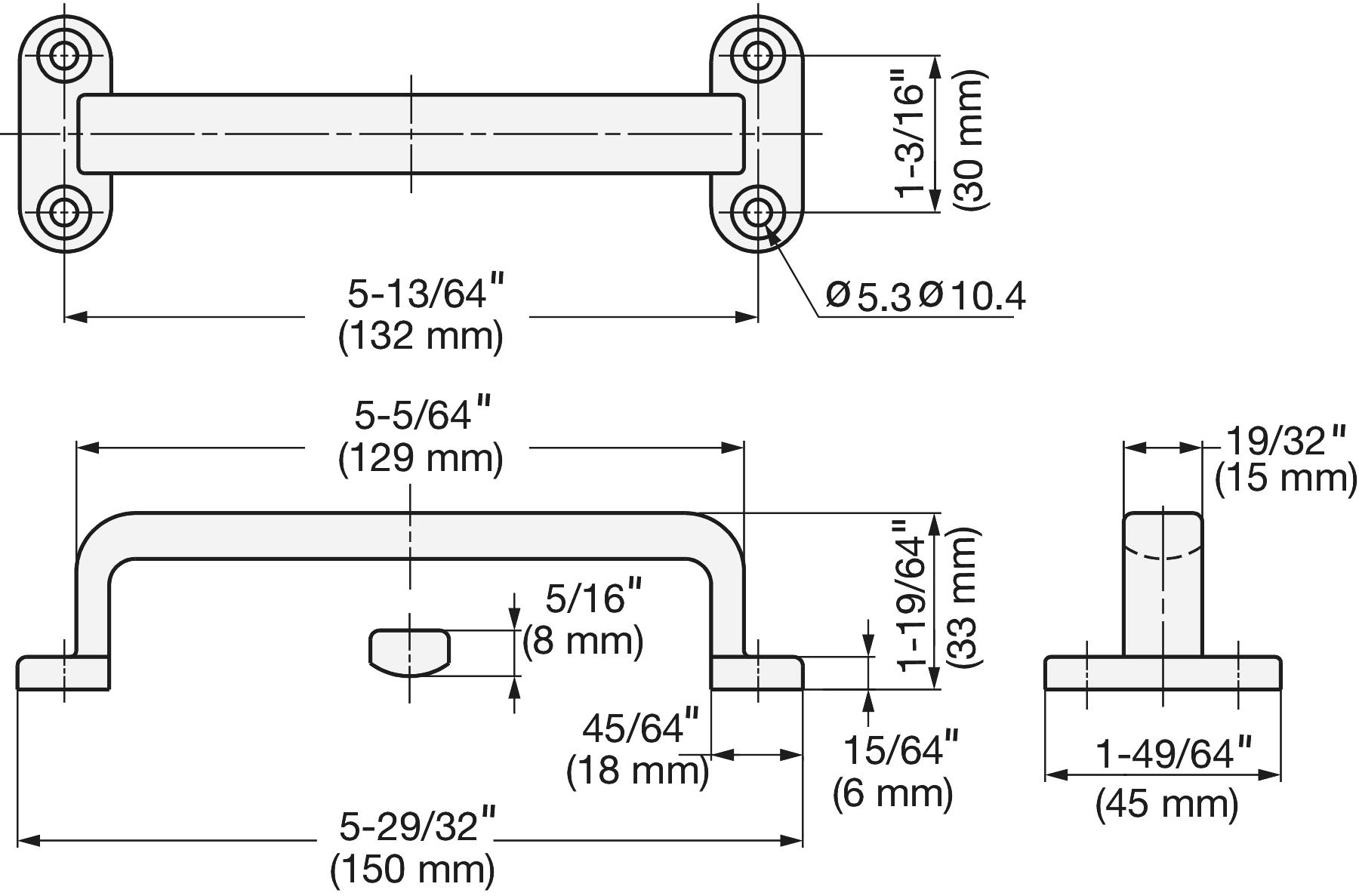 • Totale breedte van de roestvrijstalen handgreep: 150 mm (5-29/32″)