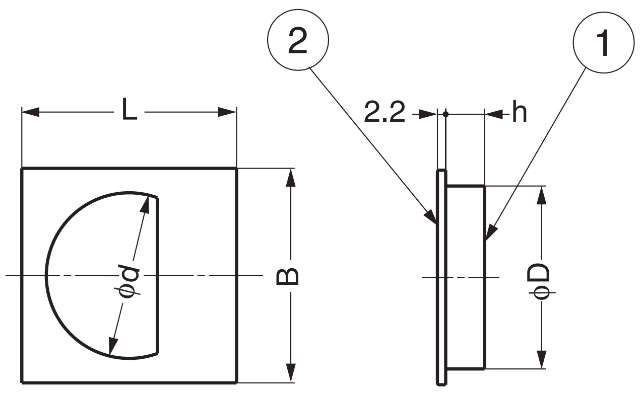 • Lengte en breedte RVS (L en B): 44 mm (1-23/32″)
