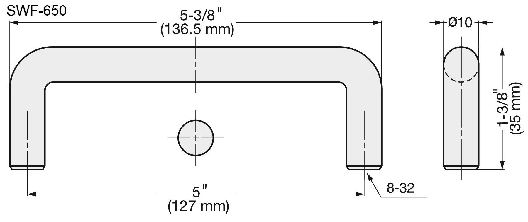 Hoogwaardige solide SUS316 roestvrijstalen beugelgreep, matte afwerking, hoogte 35 mm (1,38″) SWF-650