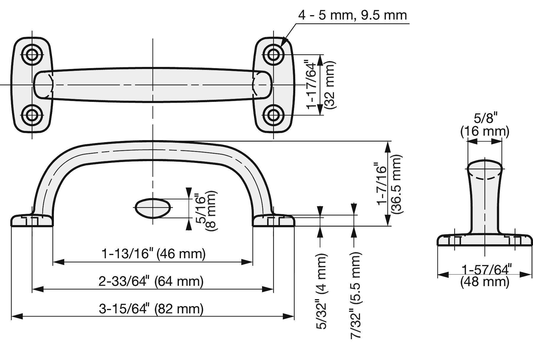 - Diameter schroefgat: ⌀5 mm (0,2″)