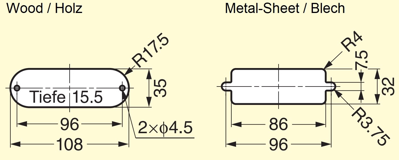 • Voor montage in het hout moet een uitsparing worden gemaakt met een minimale diepte van 15 mm (0,6″)
