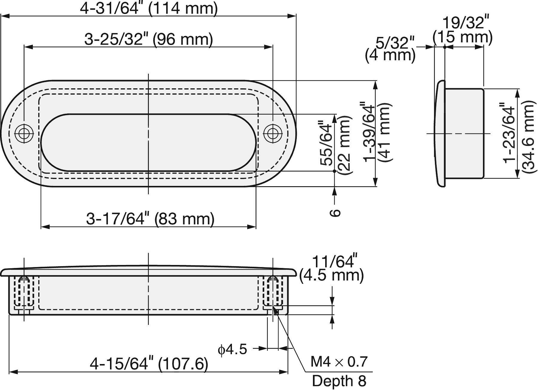 • Afstand tussen gaten: 96 mm (3,78 “)