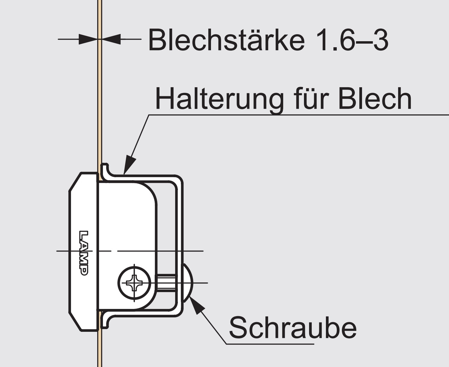 - De bevestiging is gedaan met platte ronde kopschroef M4 x 10 mm schroeven (niet inbegrepen)