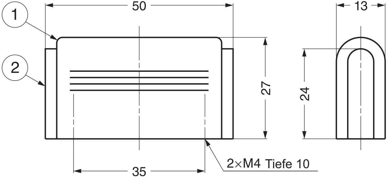 - De meubelhandgreep FS-04-S heeft twee montagegaten met binnenschroefdraad