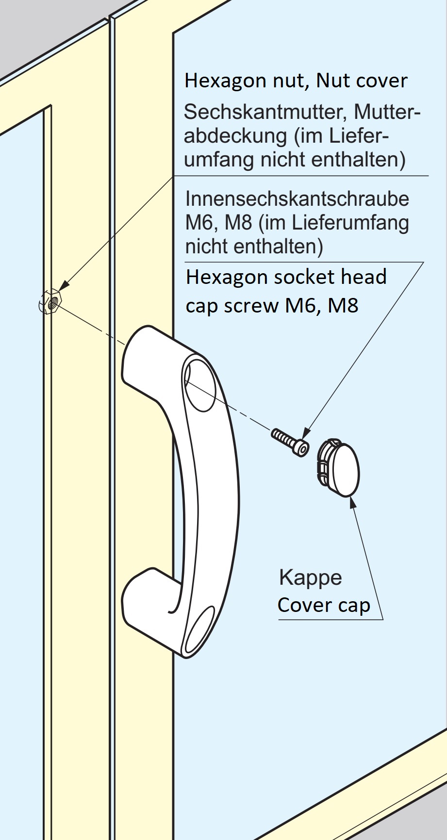 • De handgrepen zijn verkrijgbaar met de afdekdoppen in zwart, geel en grijs