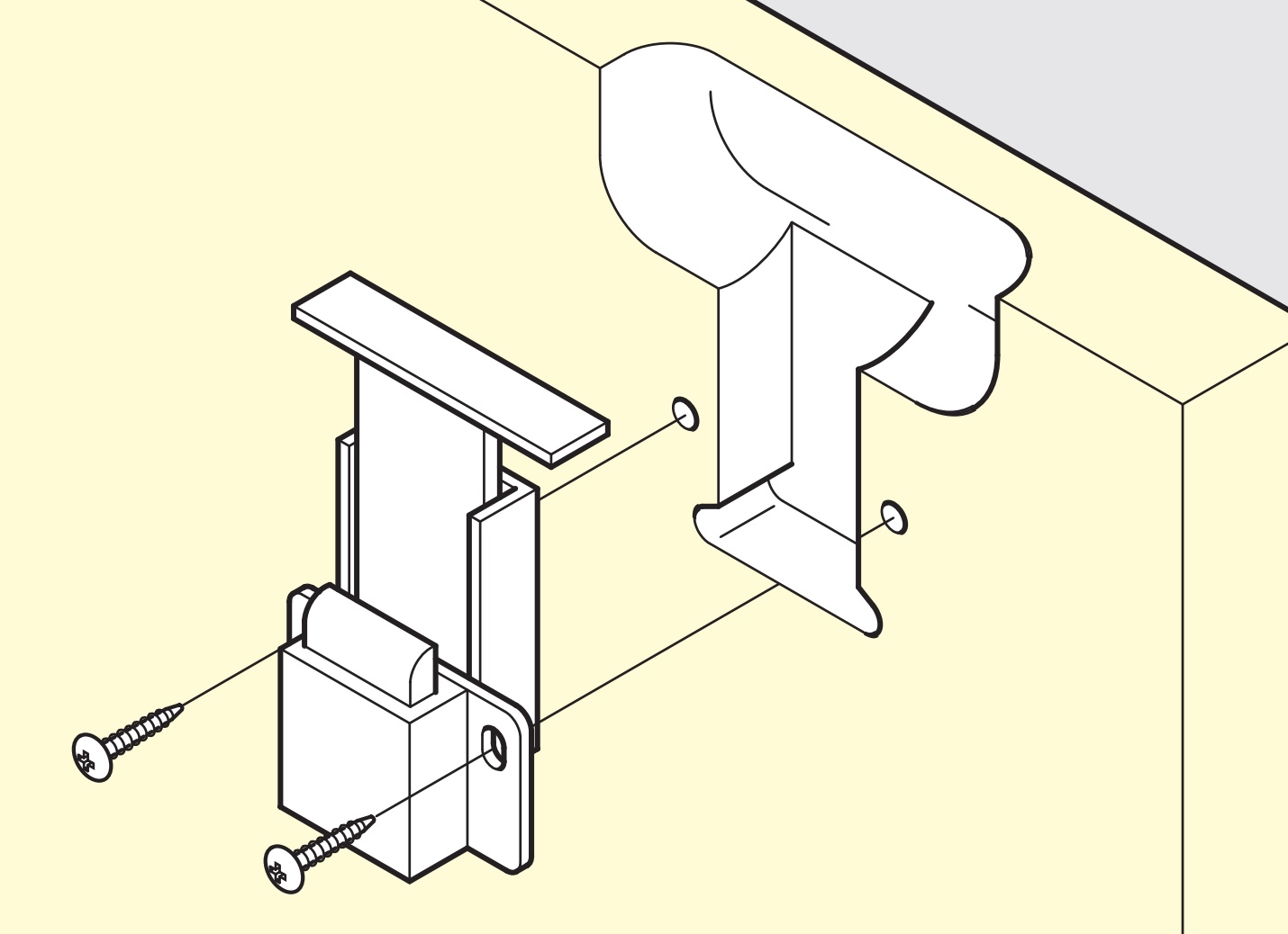 - De tegenplaat wordt met een hartafstand van 60,5 mm (2-3/8″) in de behuizing geplaatst en op zijn plaats geschroefd